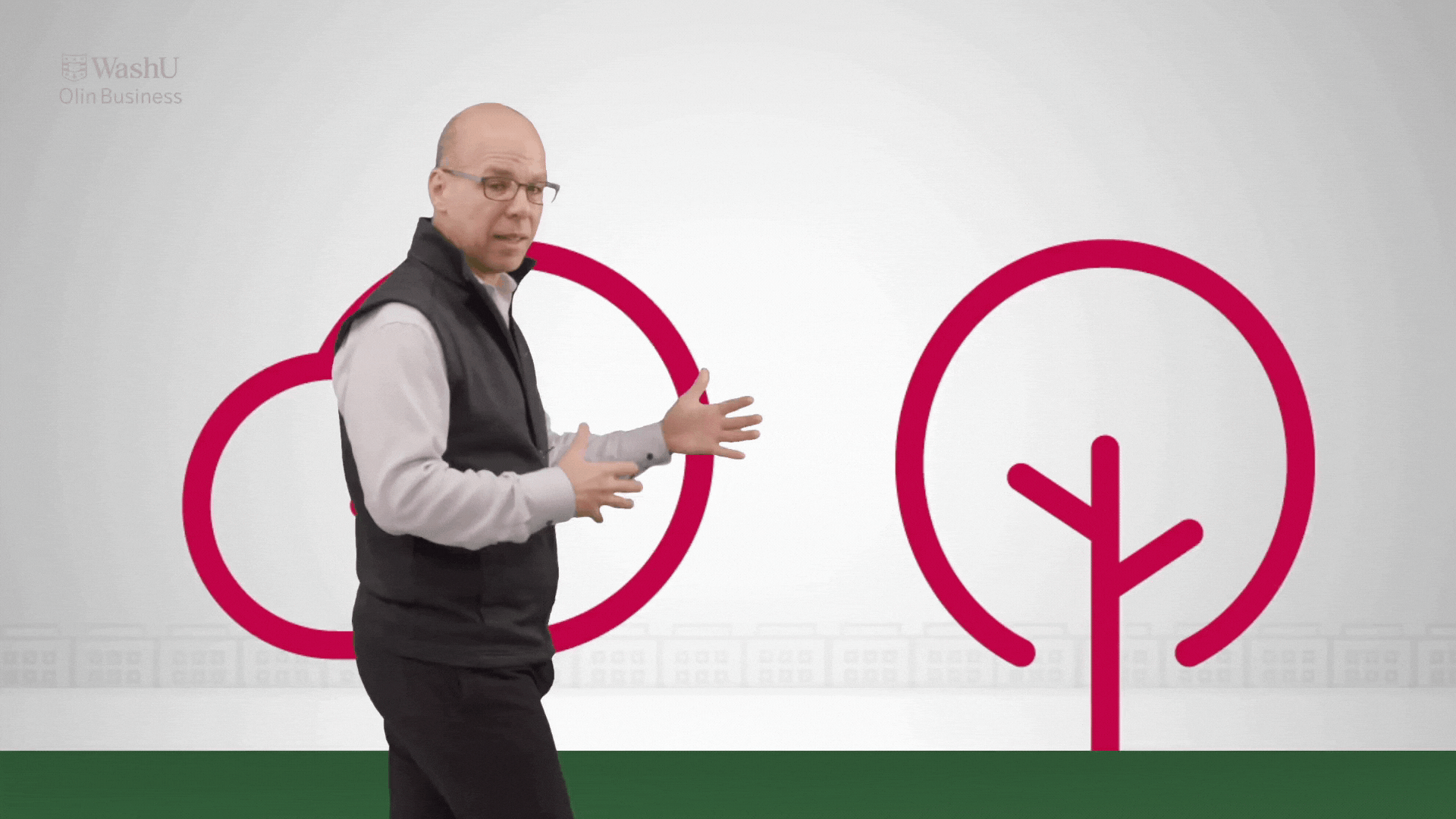 For Washington University’s Olin Business School, I developed a leadership address video featuring the Dean presenting the school’s new strategic plan for our marketing team. I pitched the creative concept of having the Dean walk along a virtual path, filmed on greenscreen while walking on a treadmill, to symbolize progress and forward momentum. I created all of the illustrated graphic assets for the virtual environment, then brought them to life through motion design and animation in Adobe After Effects. This video combined live-action with dynamic visuals to communicate institutional priorities in a clear, engaging, and visually memorable way.